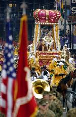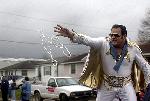 Elvis na parade Mardi Gras in New Orleans,kidaet busi za kotorie vecherom na Bourbon street zensini |  carnaval Mardi Gras in New Orleans,Lousiana |  Barabansiki ,Carnaval Mardi Gras in New Orleans |